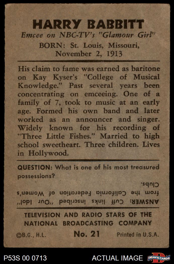 1953 Bowman T.V. & Radio NBC #21 Harry Babbitt 1.5 - FAIR
