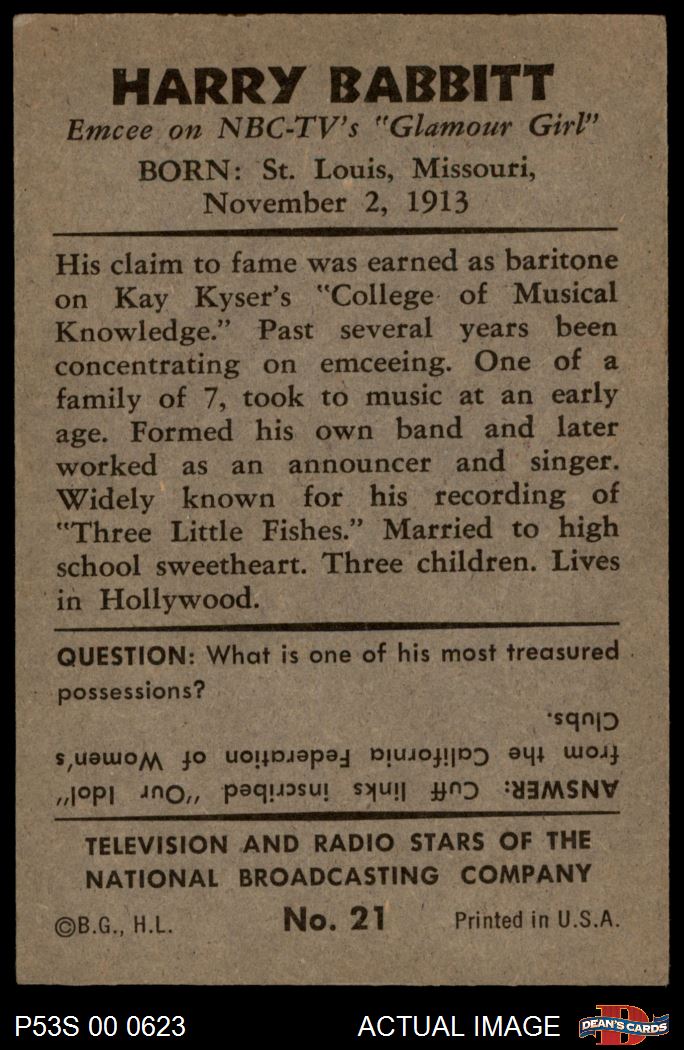 1953 Bowman T.V. & Radio NBC #21 Harry Babbitt 5 - EX