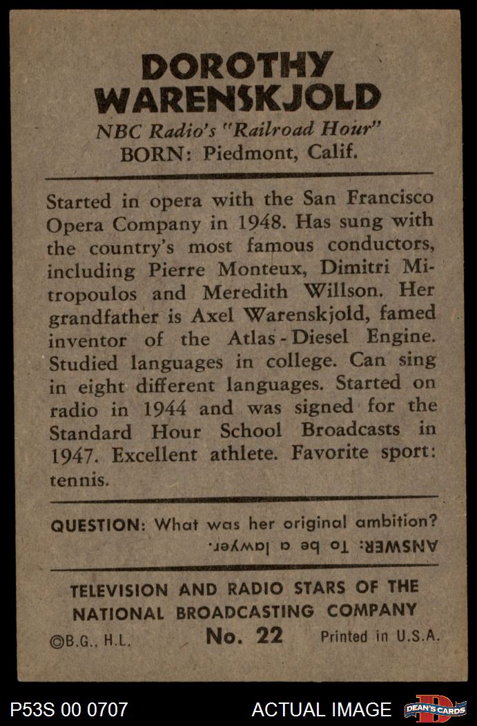 1953 Bowman T.V. & Radio NBC #22 Dorothy Warenskjold 2 - GOOD