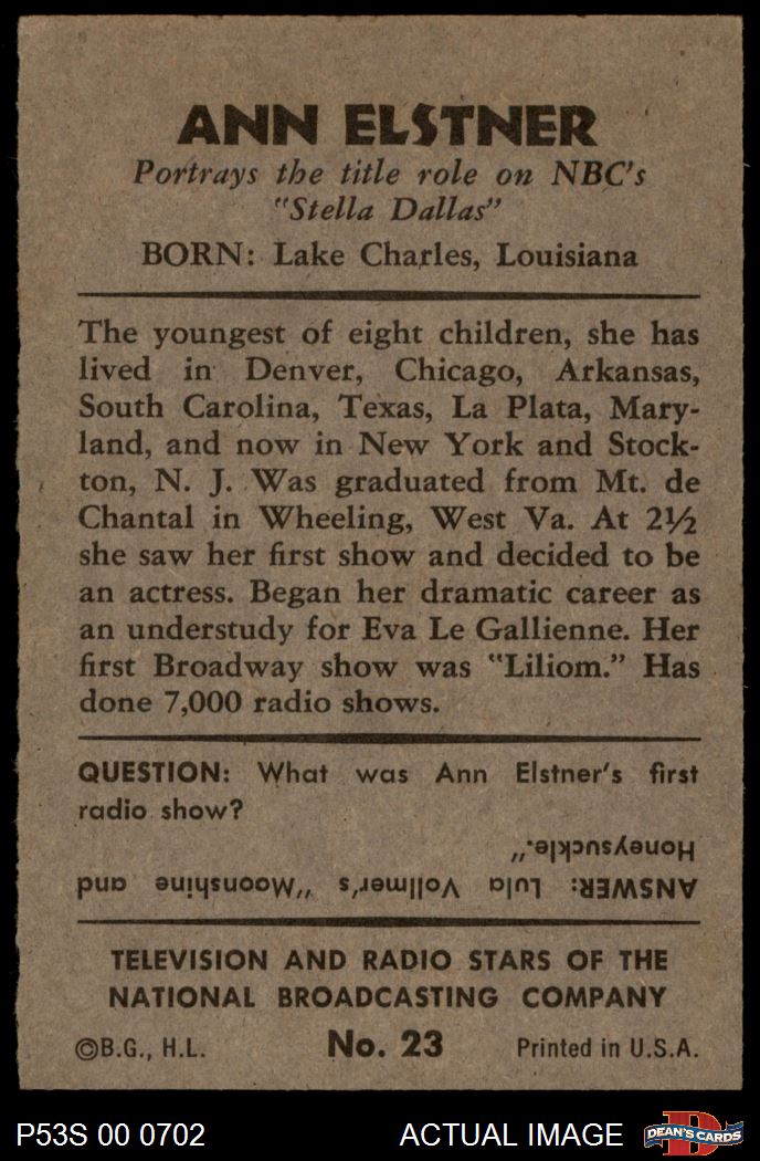 1953 Bowman T.V. & Radio NBC #23 Ann Elstner 3 - VG
