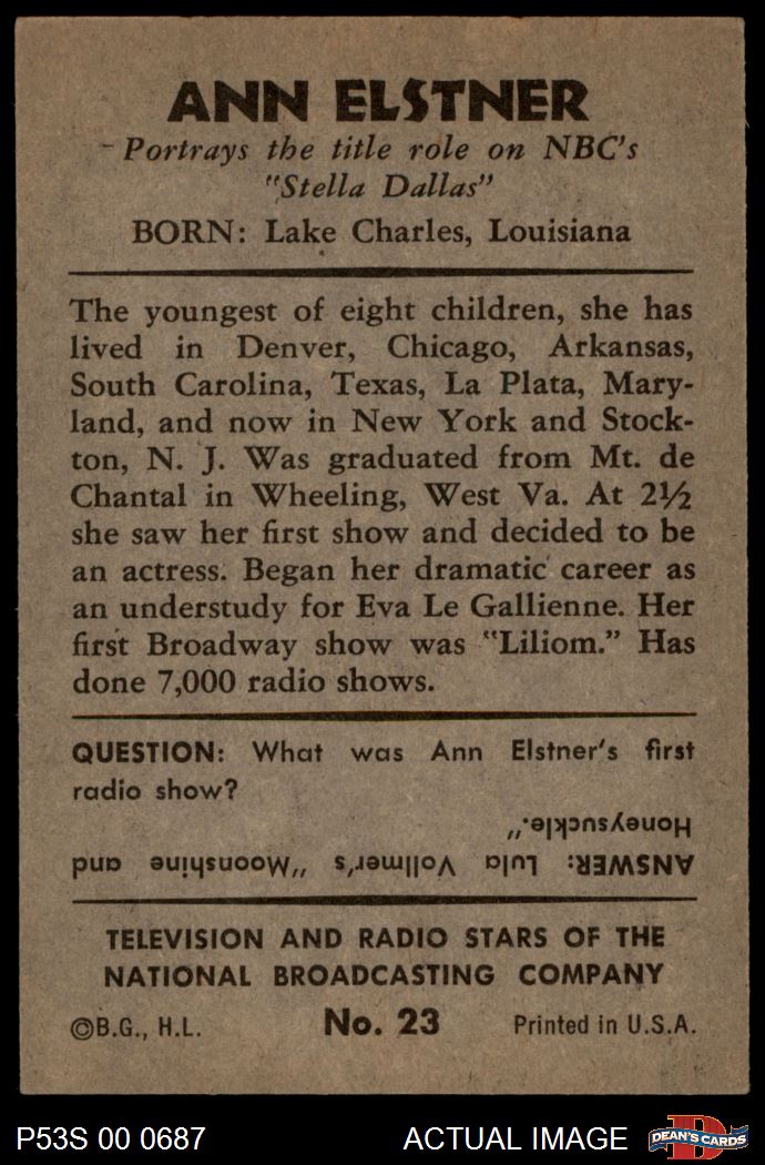 1953 Bowman T.V. & Radio NBC #23 Ann Elstner 4 - VG/EX