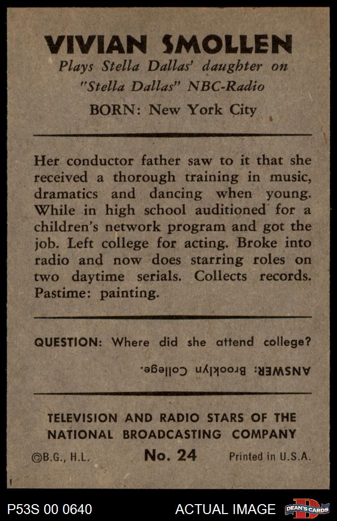 1953 Bowman T.V. & Radio NBC #24 Vivian Smolen 7.5 - NM+