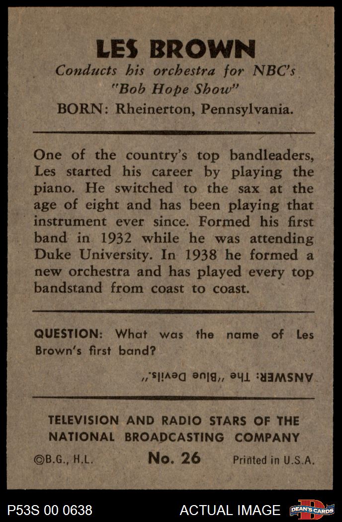 1953 Bowman T.V. & Radio NBC #26 Les Brown 7 - NM