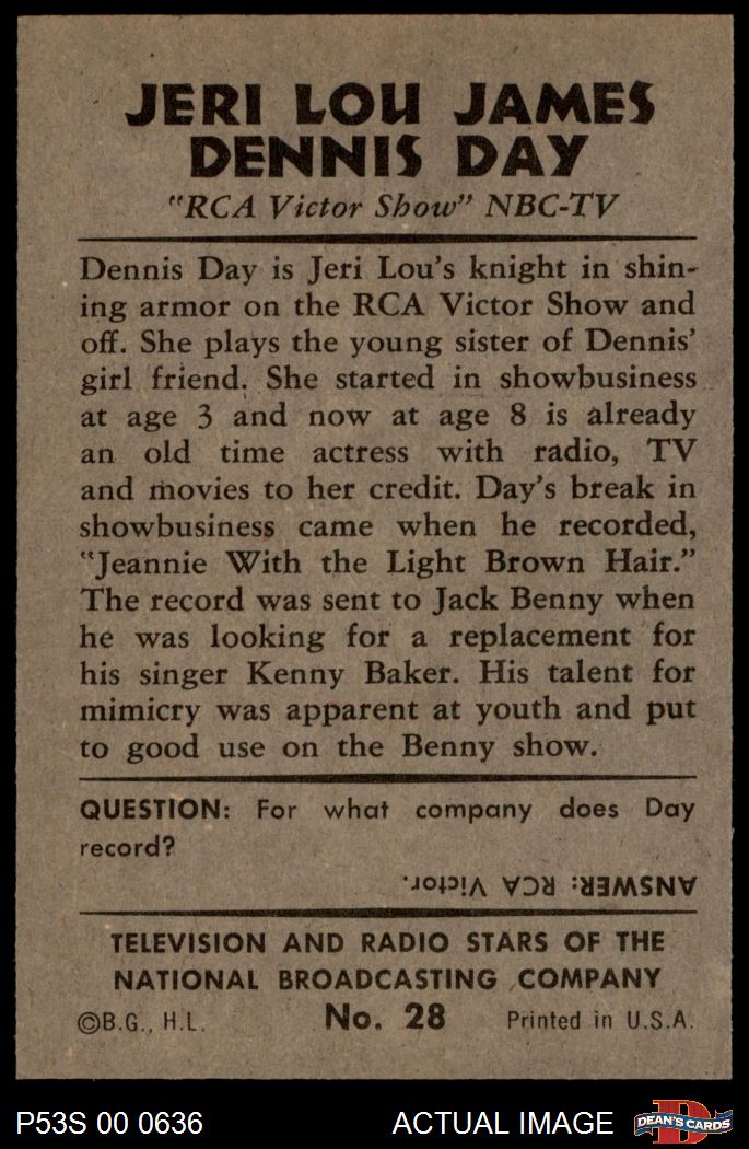 1953 Bowman T.V. & Radio NBC #28 Jeri Lou James / Dennis Day 6 - EX/MT