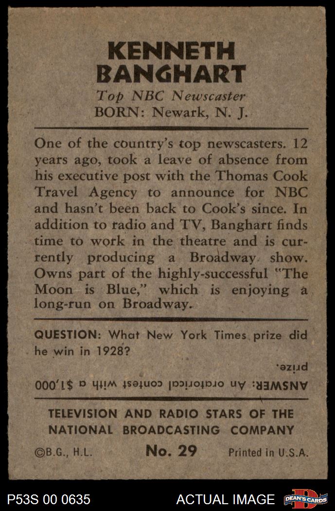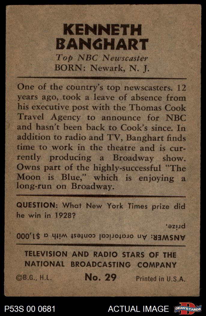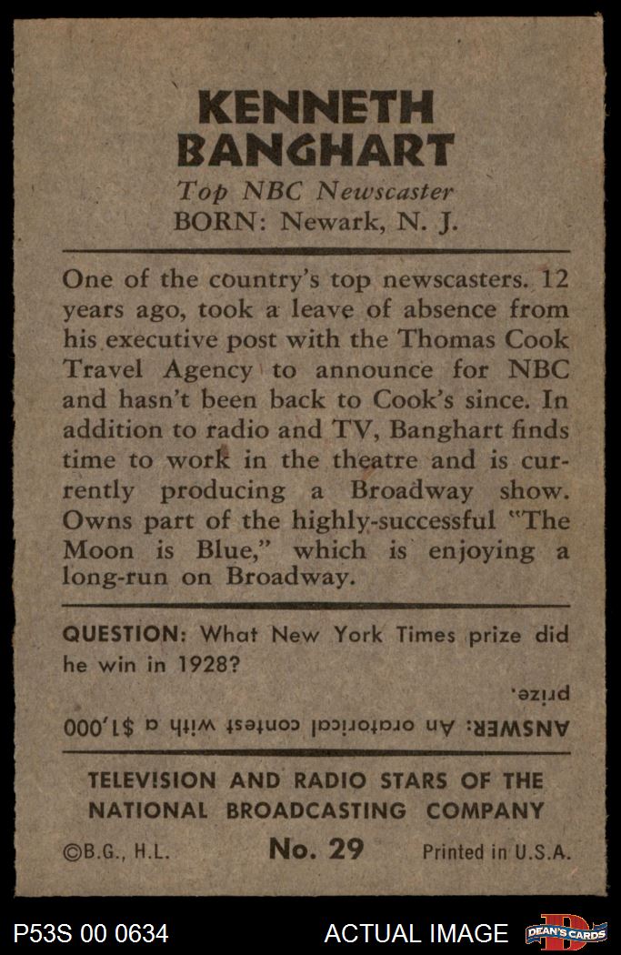 1953 Bowman T.V. & Radio NBC #29 Kenneth Banghart