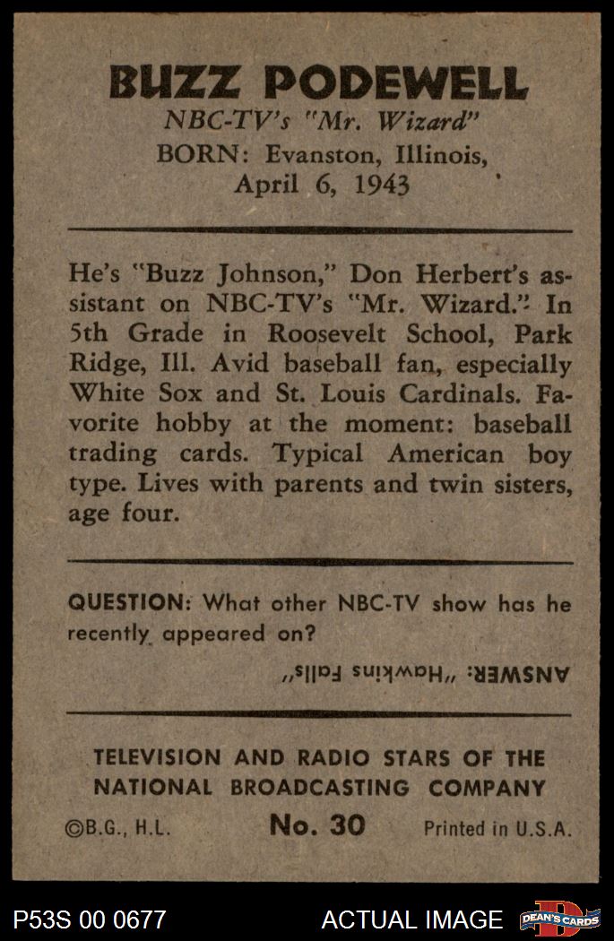 1953 Bowman T.V. & Radio NBC #30 Buzz Podewell 6 - EX/MT