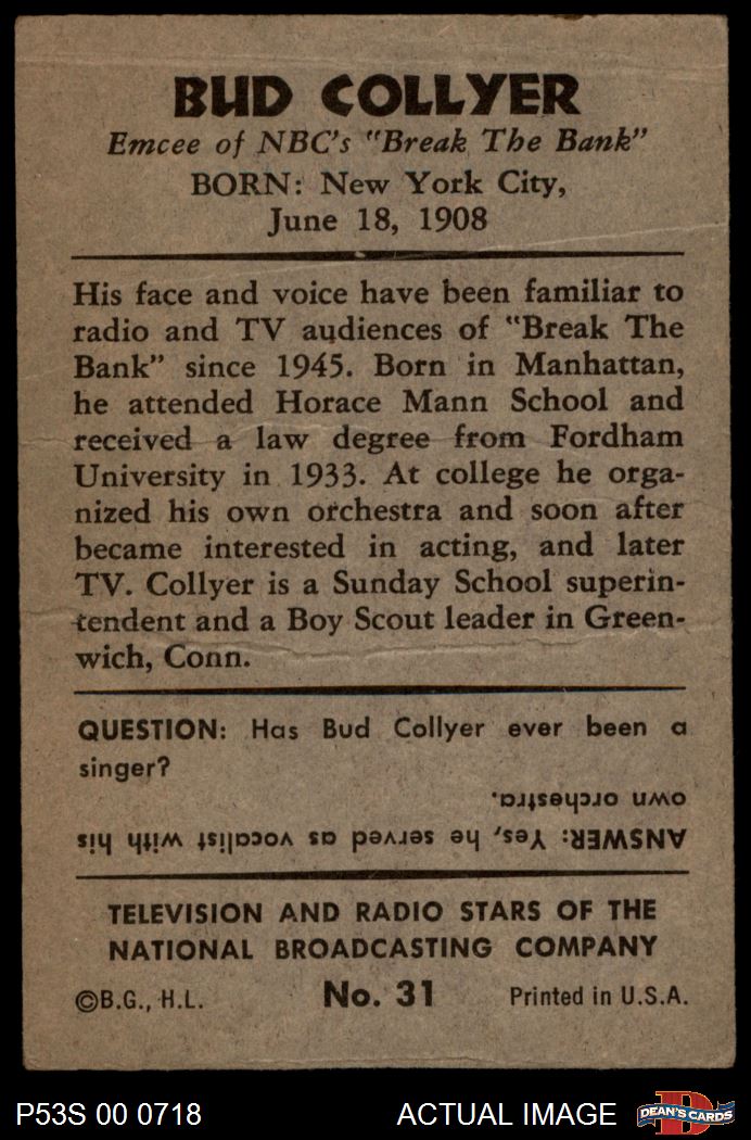 1953 Bowman T.V. & Radio NBC #31 Bud Collyer 1.5 - FAIR