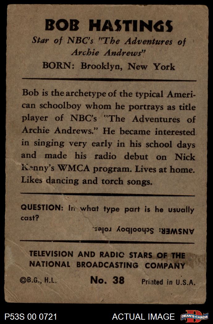 1953 Bowman T.V. & Radio NBC #38 Bob Hastings