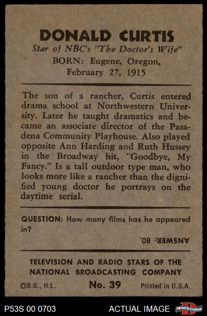 1953 Bowman T.V. & Radio NBC #39 Donald Curtis 3 - VG