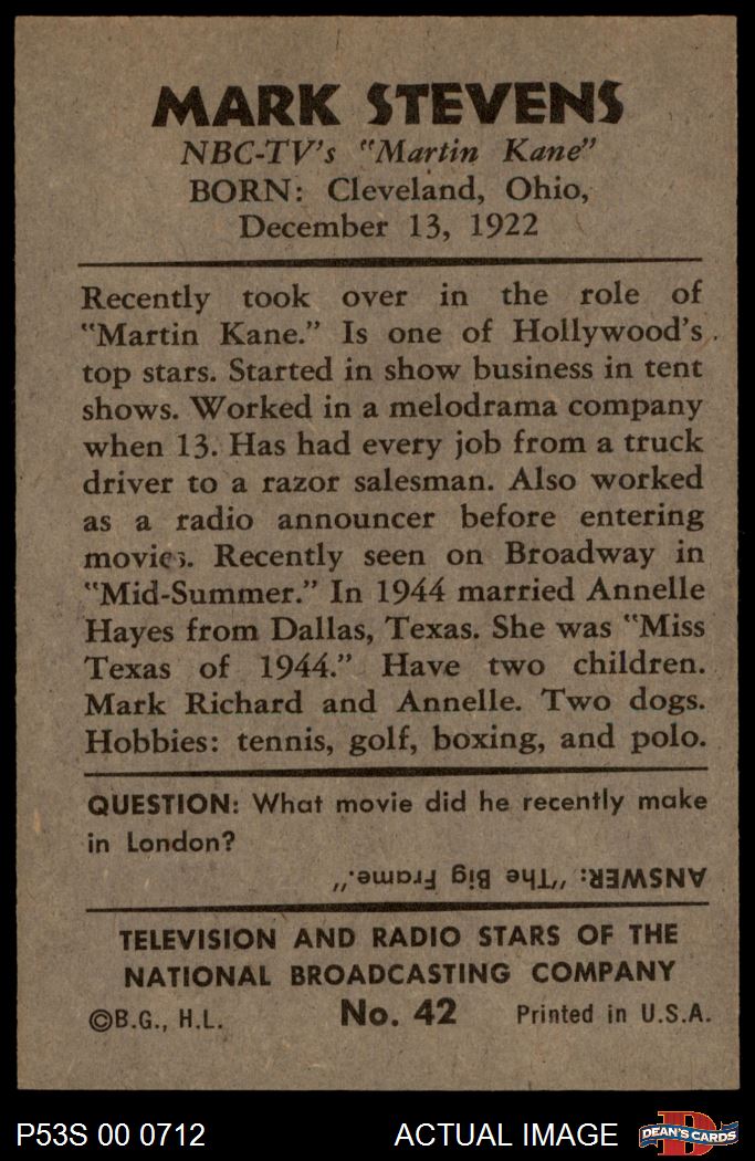 1953 Bowman T.V. & Radio NBC #42 Mark Stevens 2 - GOOD