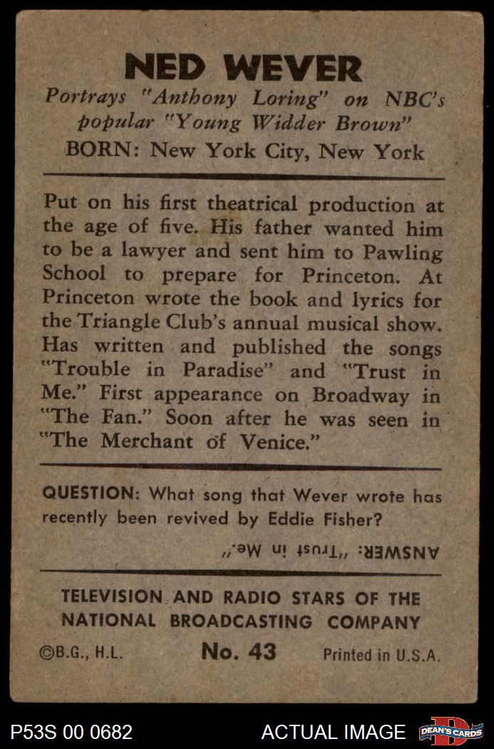 1953 Bowman T.V. & Radio NBC #43 Ned Weyer 2 - GOOD