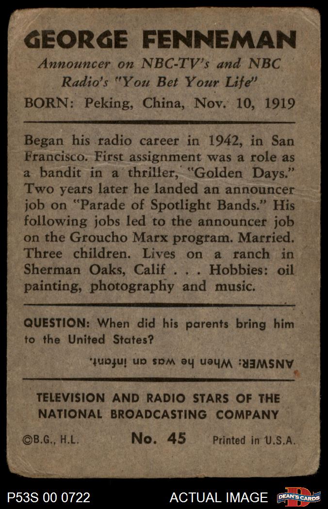 1953 Bowman T.V. & Radio NBC #45 George Fenneman 1 - POOR