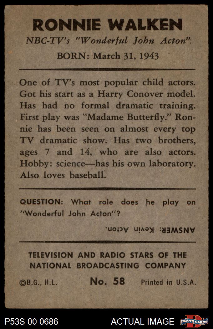 1953 Bowman T.V. & Radio NBC #58 Ronnie Walken