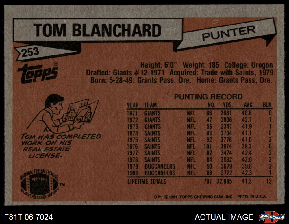 1981 Topps #253 Tom Blanchard