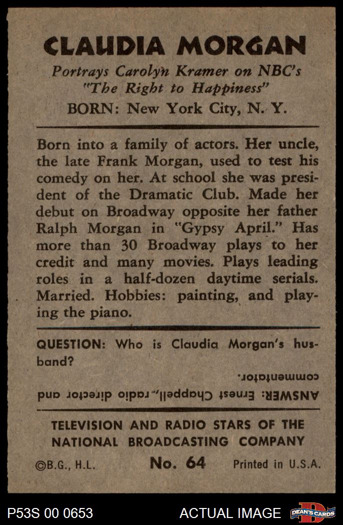 1953 Bowman T.V. & Radio NBC #64 Claudia Morgan