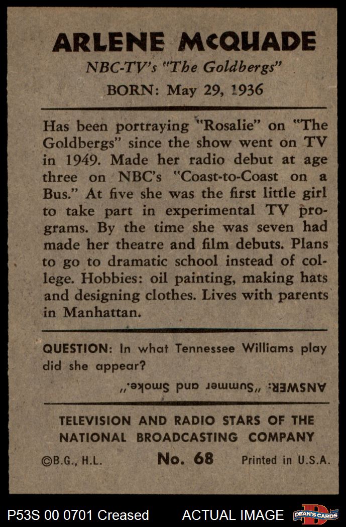 1953 Bowman T.V. & Radio NBC #68 Arlene McQuade