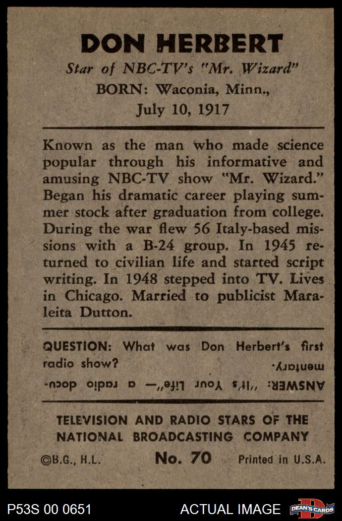 1953 Bowman T.V. & Radio NBC #70 Don Herbert 5 - EX