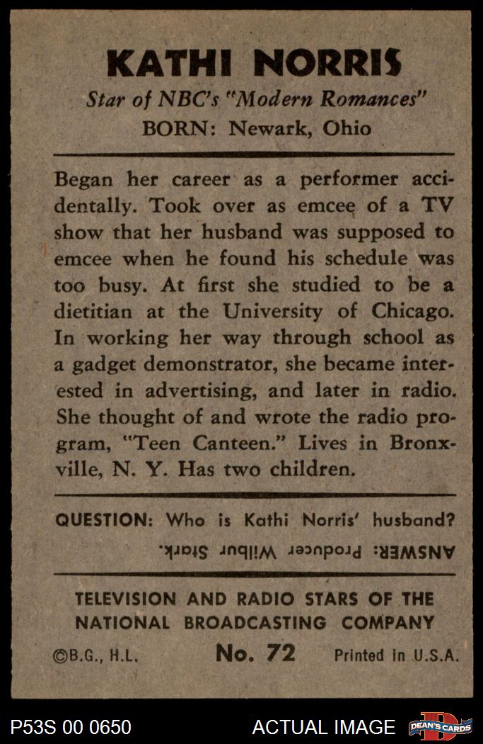 1953 Bowman T.V. & Radio NBC #72 Kathi Norris 4 - VG/EX