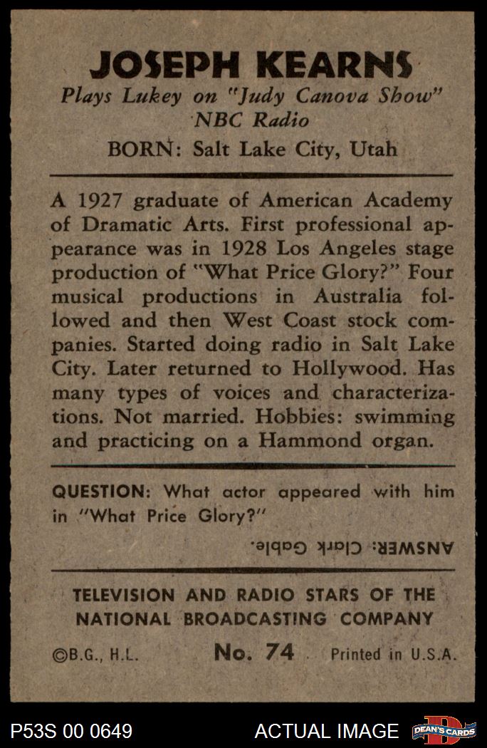 1953 Bowman T.V. & Radio NBC #74 Joseph Kearns 5 - EX