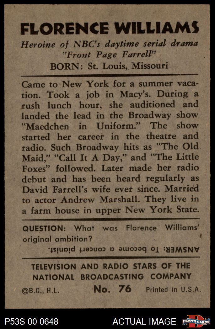 1953 Bowman T.V. & Radio NBC #76 Florence Williams