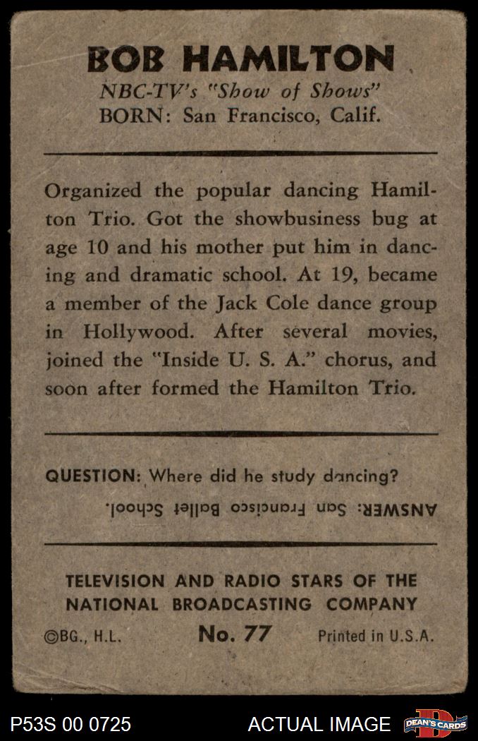 1953 Bowman T.V. & Radio NBC #77 Bob Hamilton 1 - POOR