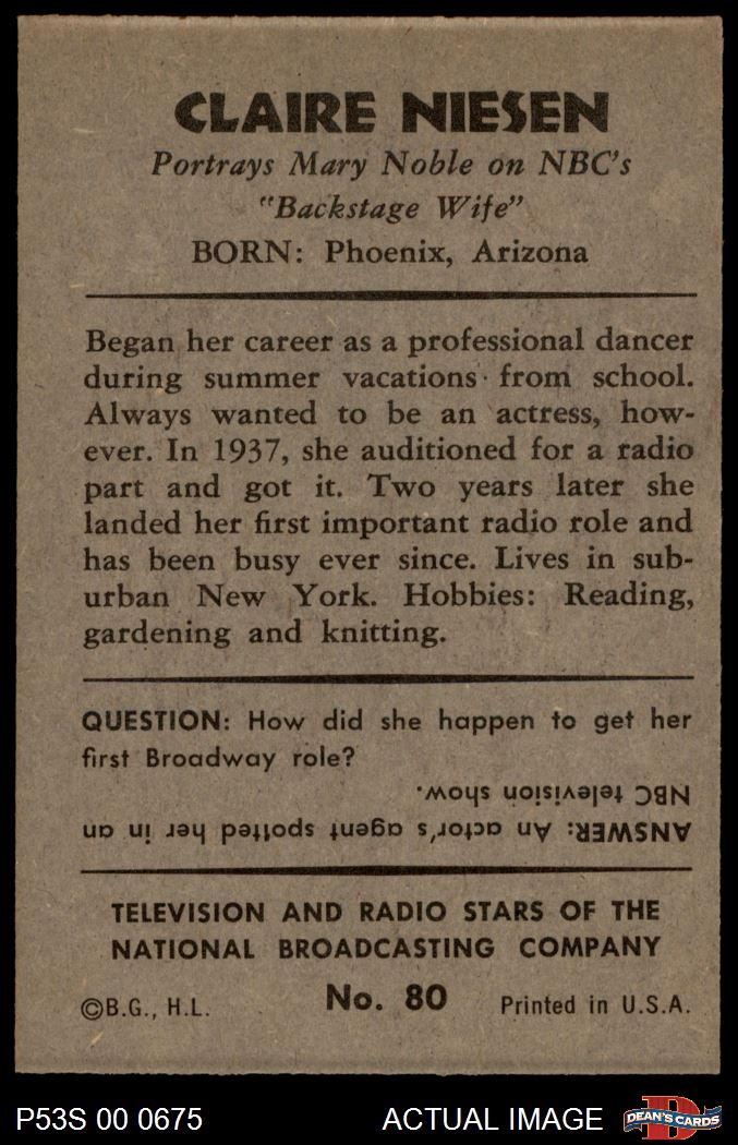 1953 Bowman T.V. & Radio NBC #80 Claire Niesen 6 - EX/MT