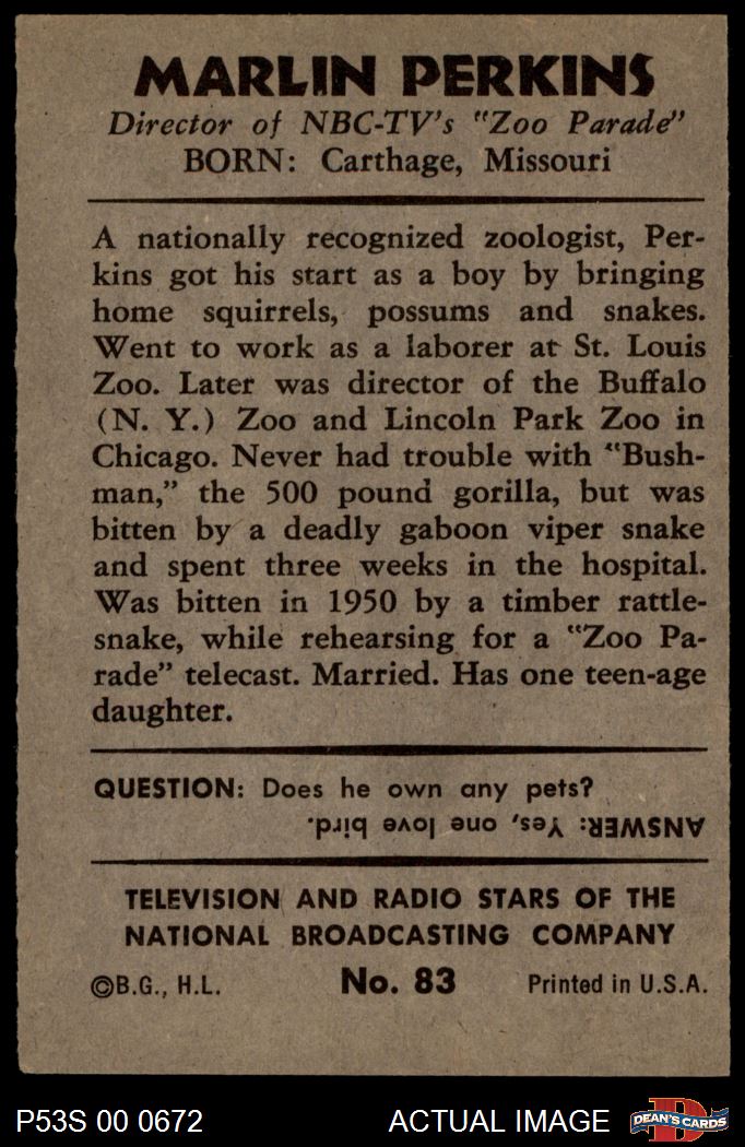 1953 Bowman T.V. & Radio NBC #83 Marlin Parkins