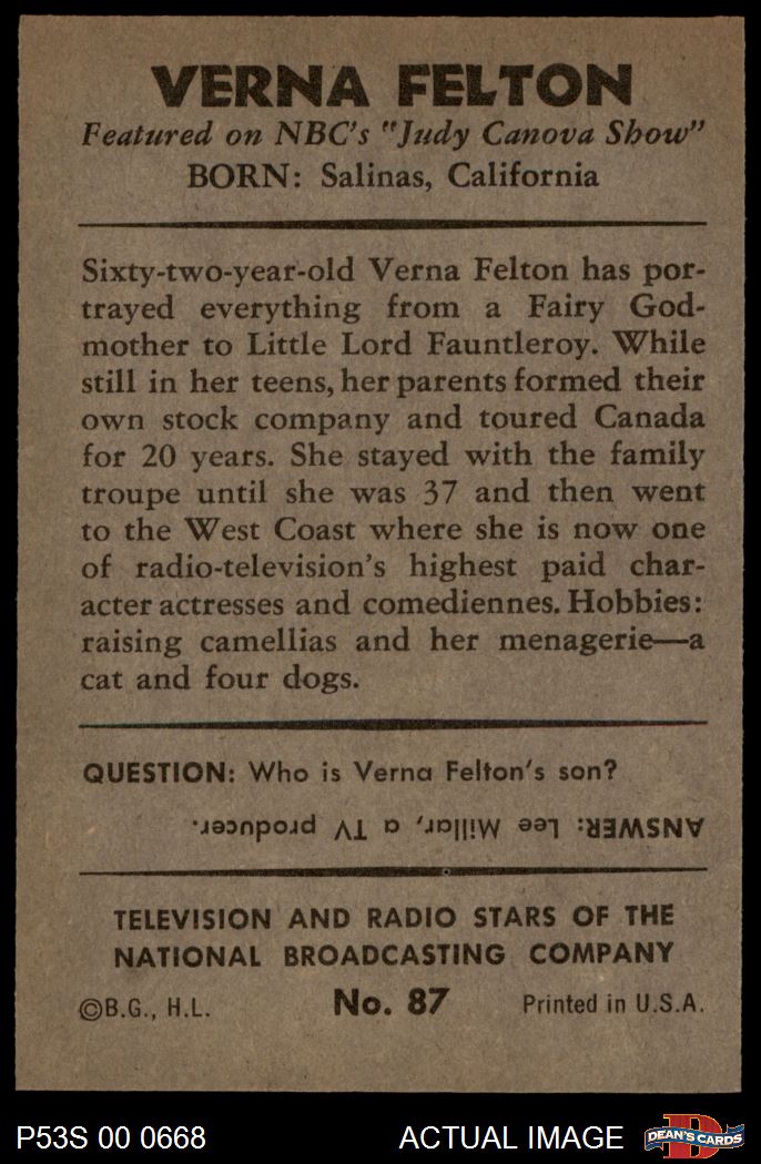 1953 Bowman T.V. & Radio NBC #87 Verna Felton 6 - EX/MT
