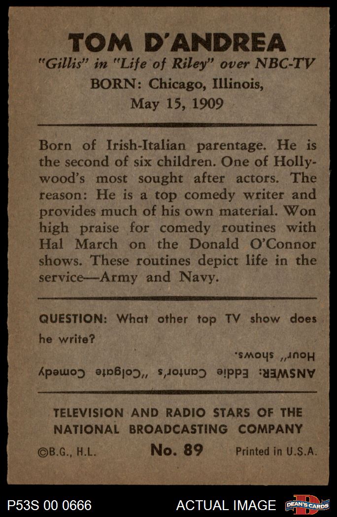 1953 Bowman T.V. & Radio NBC #89 Tom D'Andrea 5 - EX