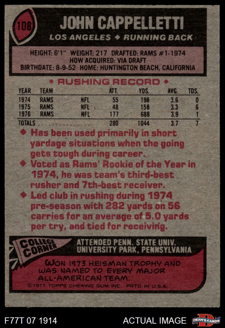 1977 Topps #108 John Cappelletti 4 - VG/EX
