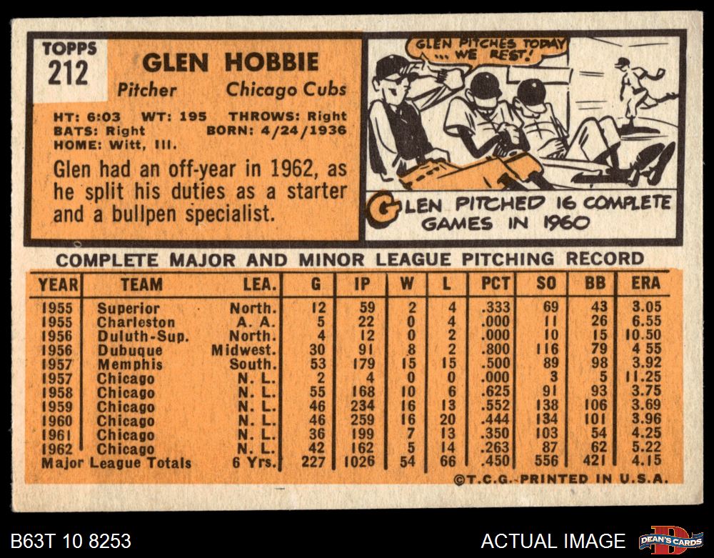 1963 Topps #212 Glen Hobbie 4 - VG/EX