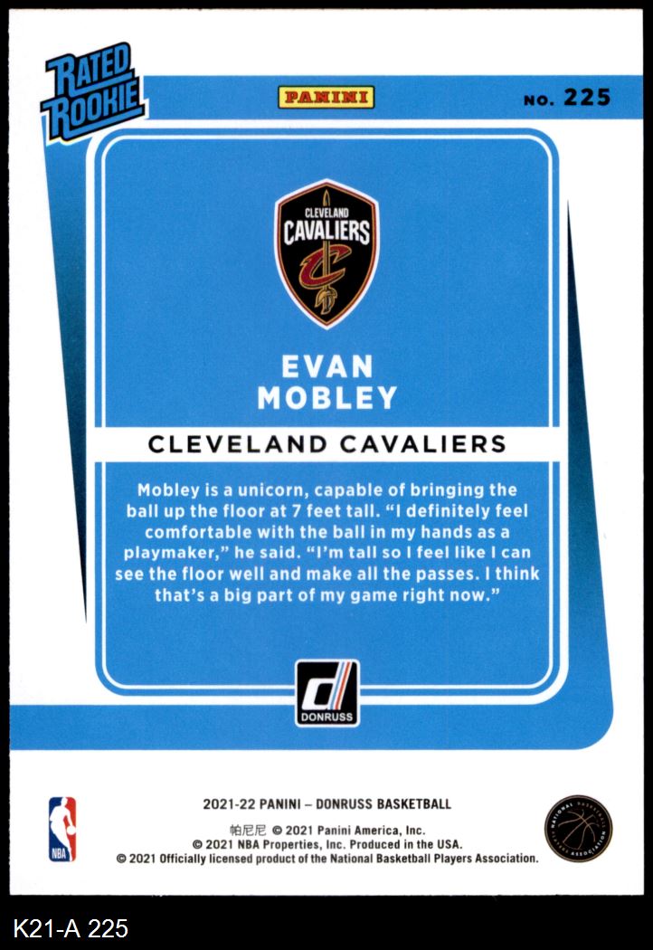 2021 Donruss #225 Evan Mobley 8 - NM/MT