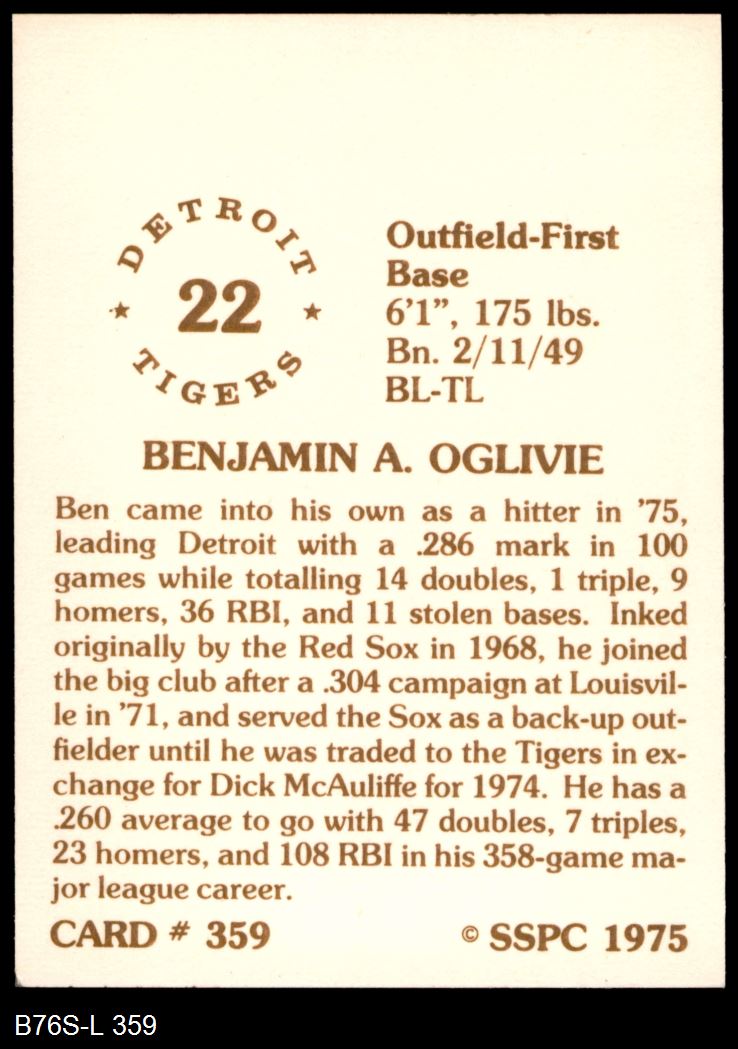 1975-76 SSPC (5,550 available)1975 SSPC Tigers (281 available)