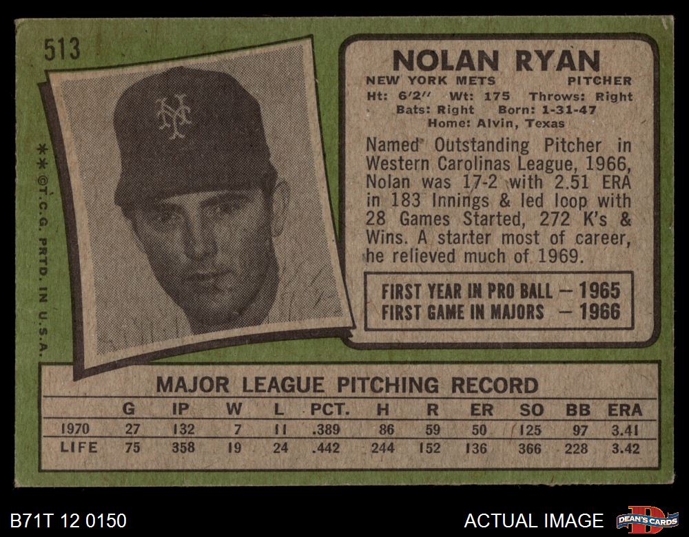 1971 Topps #513 Nolan Ryan 3 - VG