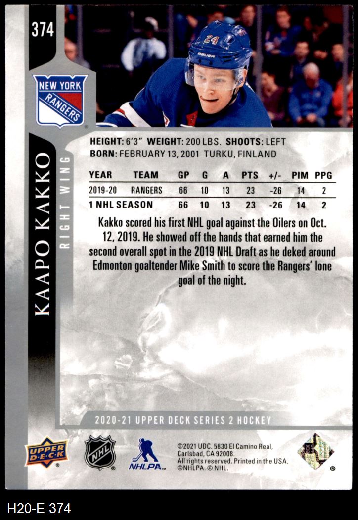 2020 Upper Deck #374 Kaapo Kakko