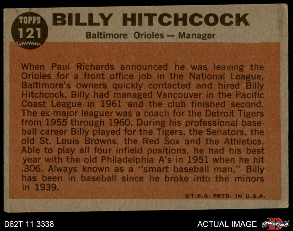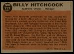1962 Topps #121 NRM Billy Hitchcock