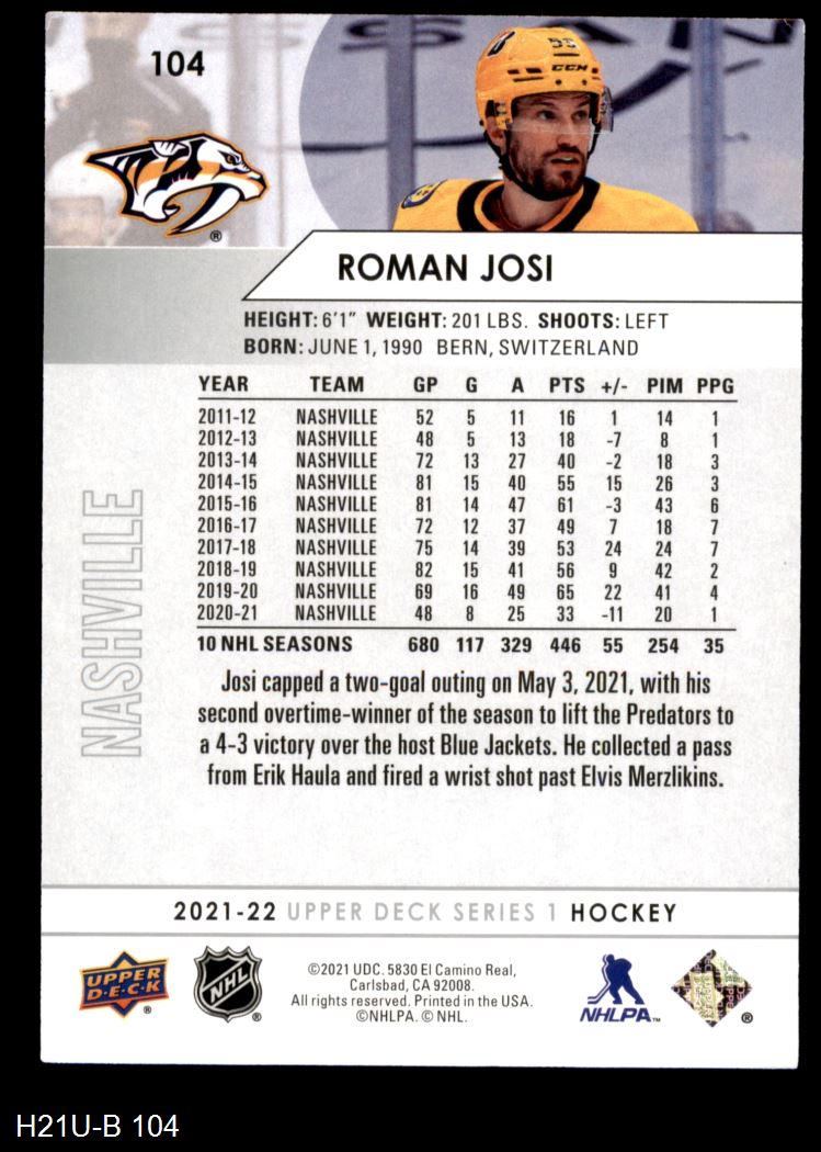 2021 Upper Deck #104 Roman Josi 8 - NM/MT