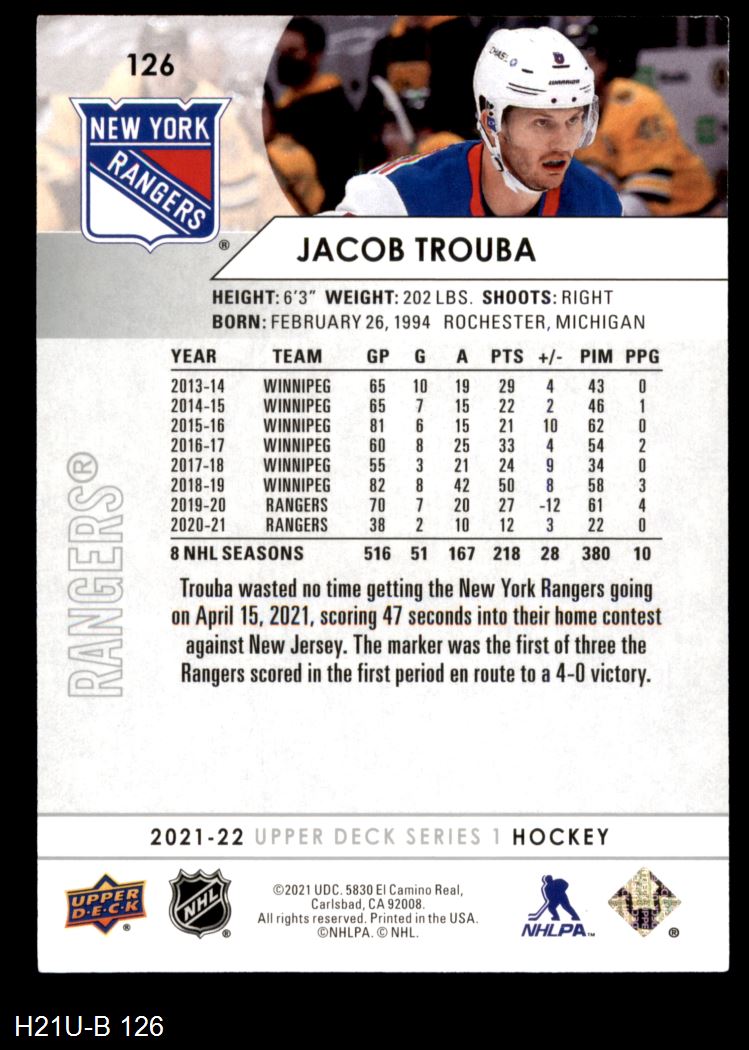 2021 Upper Deck #126 Jacob Trouba 8 - NM/MT