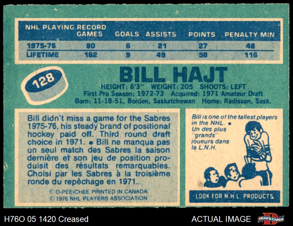 1976 O-Pee-Chee NHL #128 Bill Hajt 3 - VG