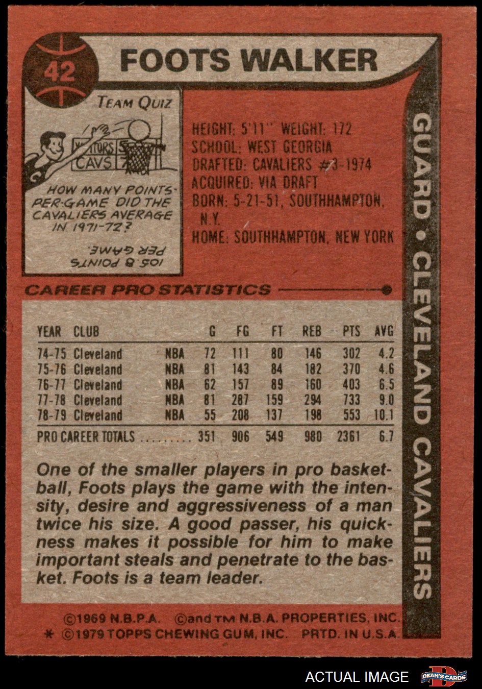 1979 Topps #42 Foots Walker 5 - EX