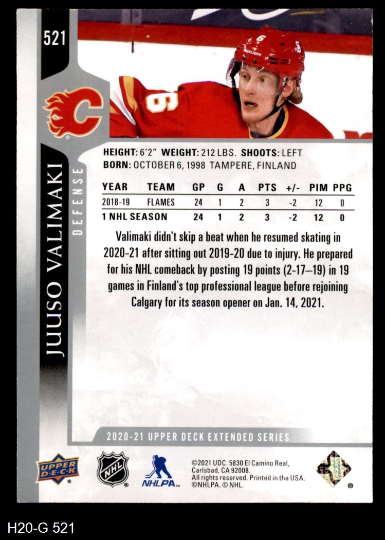 2020 Upper Deck #521 Juuso Valimaki 8 - NM/MT