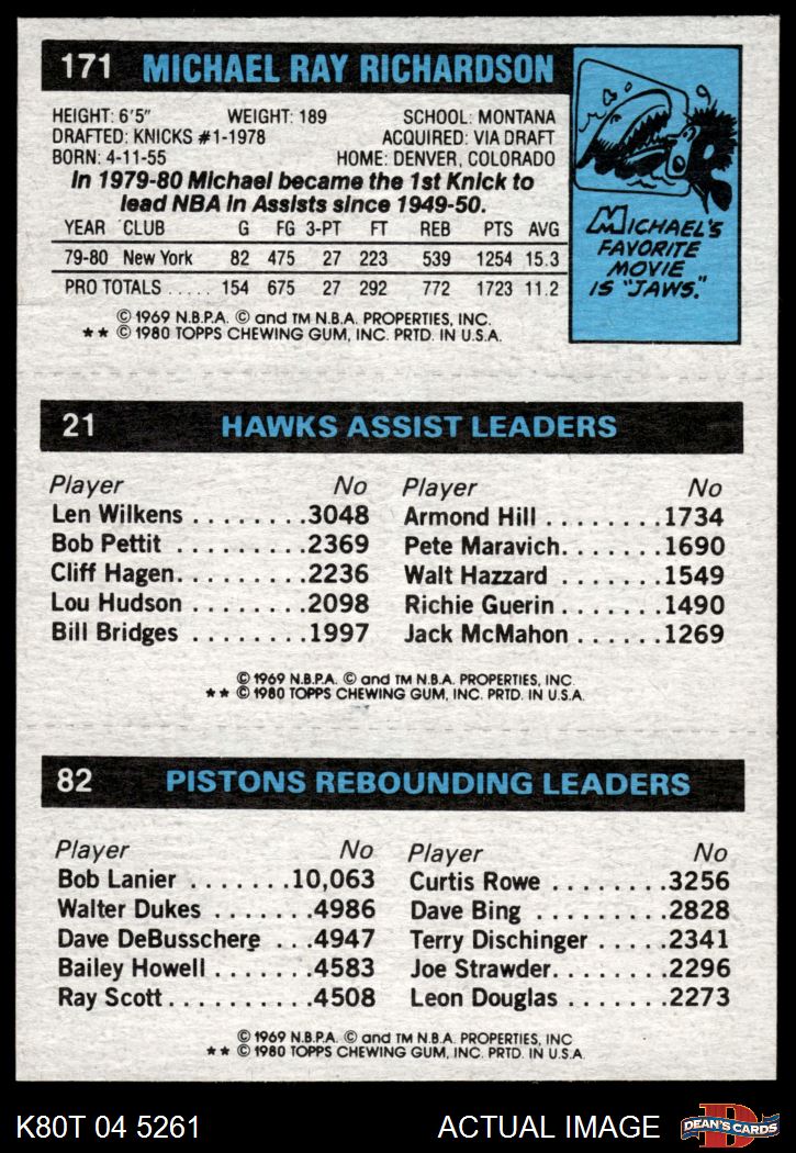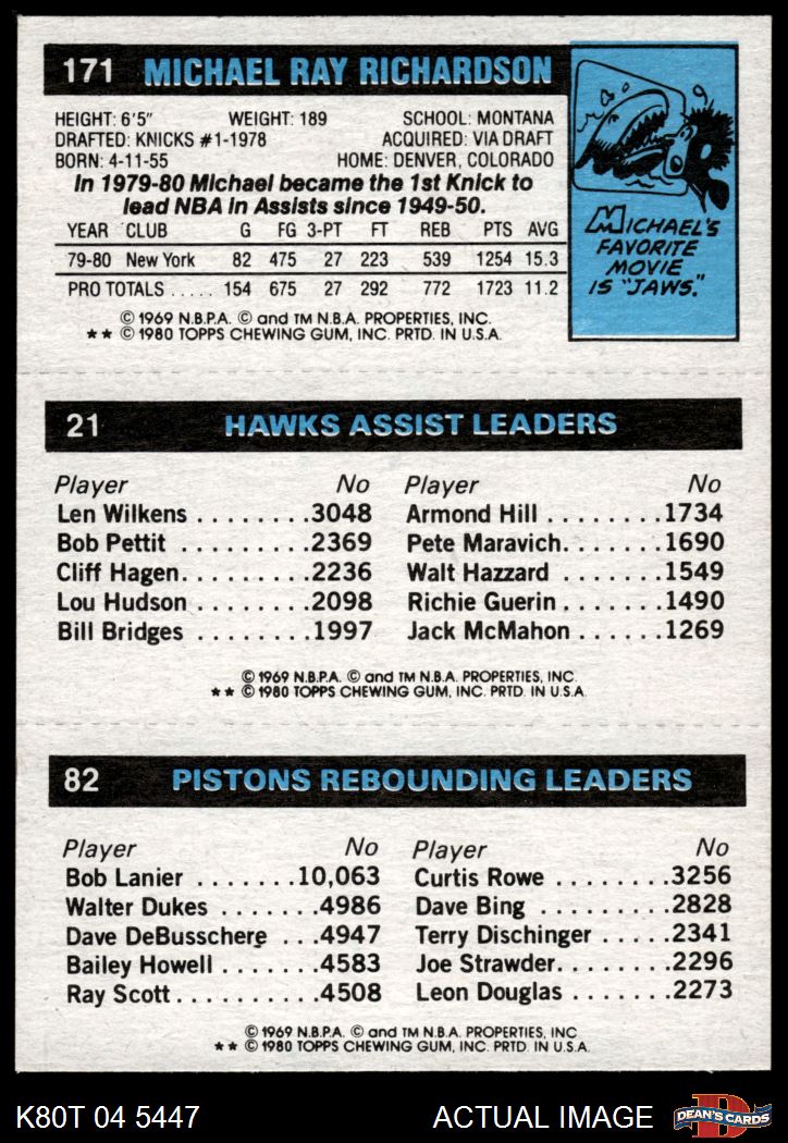 1980 Topps - Terry Tyler / Armond Hill / Michael Ray Richardson 82 / 21 / 171 8 - NM/MT