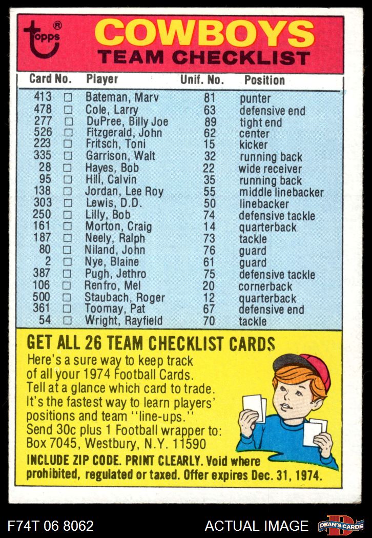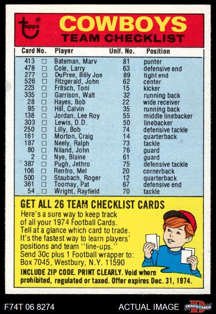 1974 Topps Football Cards (12,235 available)1974 Topps Checklist Cowboys (7 available)