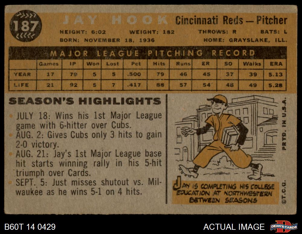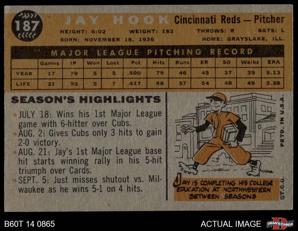 1960 Topps #187 Jay Hook
