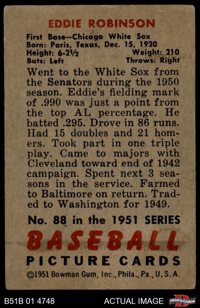 1951 Bowman #88 Eddie Robinson