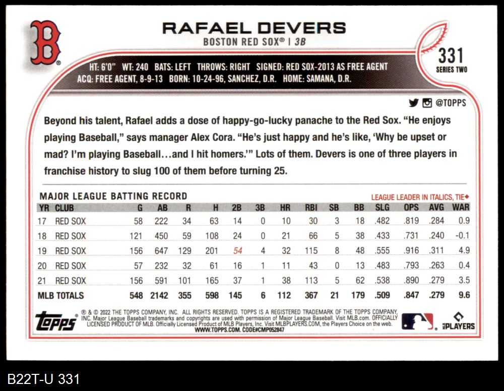 2022 Topps #331 A Rafael Devers 8 - NM/MT