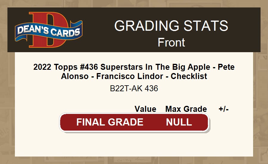 Superstars In The Big Apple - Pete Alonso - Francisco Lindor - Checklist (6 available)