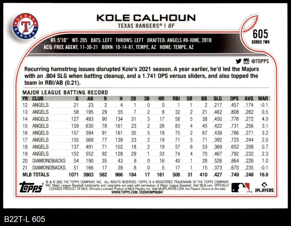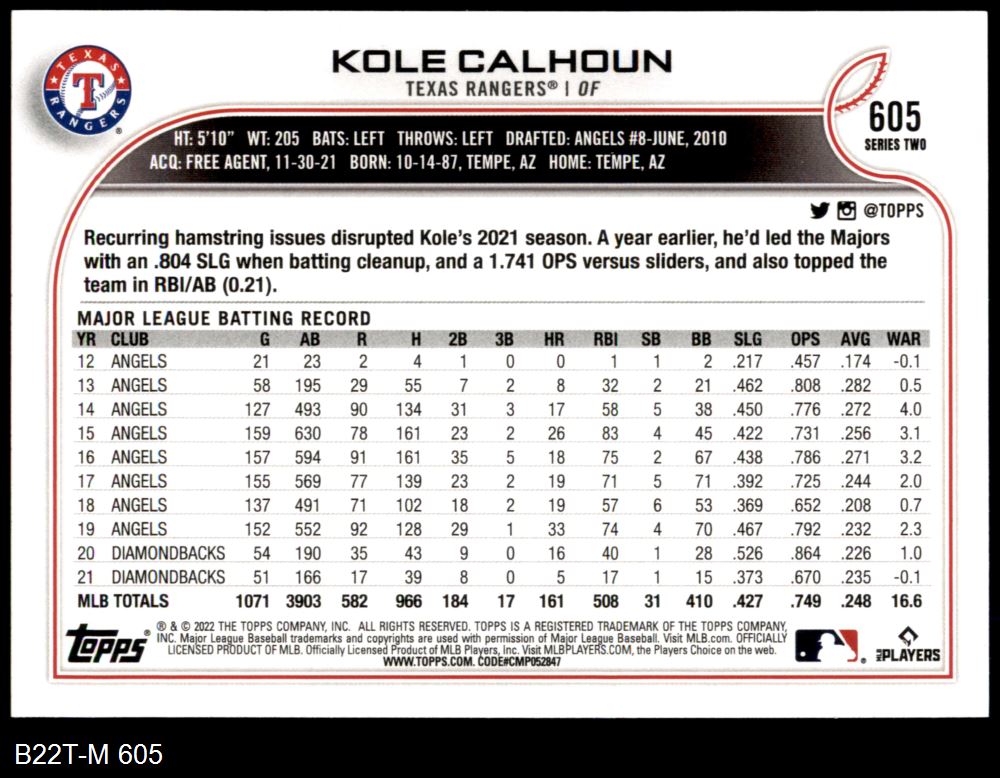 2022 Topps #605 Kole Calhoun 8 - NM/MT