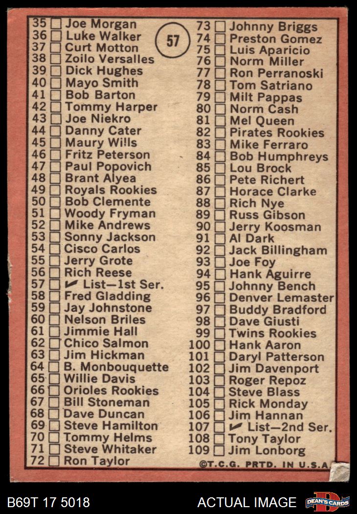 1969 Topps #57 Cropping on Inset photo varies slightly - Denny McLain Checklist 1 1 - POOR
