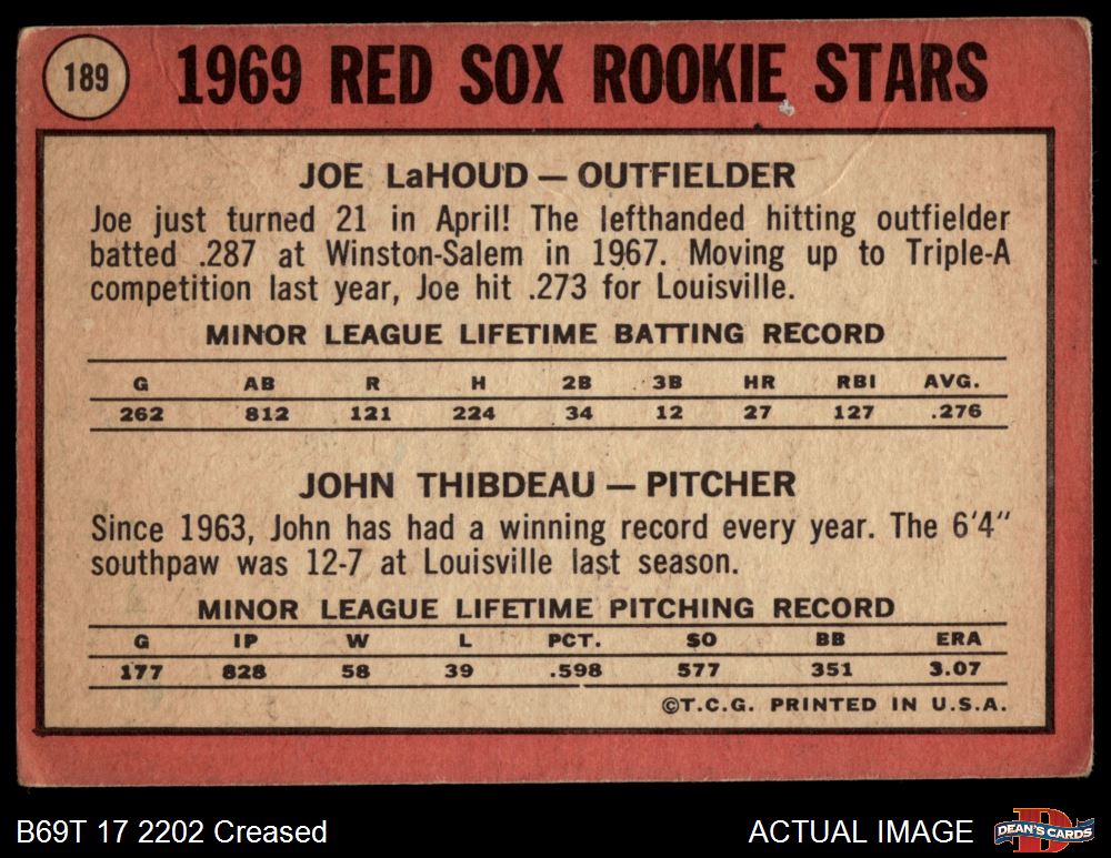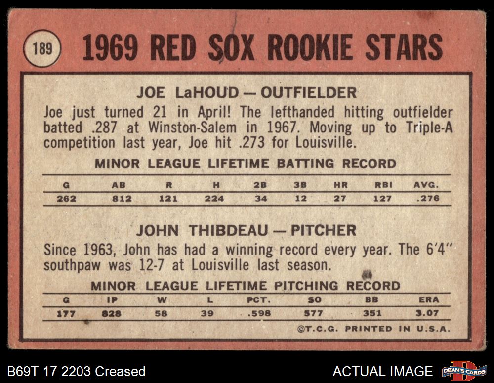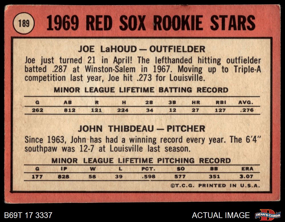 1969 Topps #189 - Joe Lahoud / John Thibodeau Red Sox Rookies 1.5 - FAIR